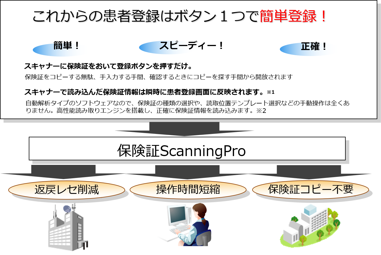※1 保険証ScanningProは入力を支援/補助するソフトです。100%手入力を省くものではありません。